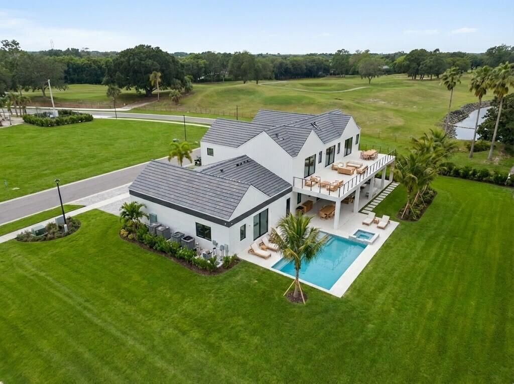 Welcome to Farrell Estates, an elite collection of 27 bespoke residences within the prestigious Palm Beach Polo Club. Introducing Lot 1, a masterpiece of modern luxury boasting premier, unobstructed views of the historic old golf course. This residence epitomizes Hamptons-style indoor-outdoor living, centered around an expansive open floor plan. Walls of glass and sliding doors invite natural light to dance across wide-plank light oak floors and stunning quartzite surfaces. The chef's kitchen fe...Welcome to Farrell Estates, an elite collection of 27 bespoke residences within the prestigious Palm Beach Polo Club. Introducing Lot 1, a masterpiece of modern luxury boasting premier, unobstructed views of the historic old golf course. This residence epitomizes Hamptons-style indoor-outdoor living, centered around an expansive open floor plan. Walls of glass and sliding doors invite natural light to dance across wide-plank light oak floors and stunning quartzite surfaces. The chef's kitchen features custom cabinetry, while the downstairs Junior Suite offers serene pool and spa vistas. Complete with a three-car garage and over 1,000 sq. ft. of covered patio space, this home is designed for the most discerning lifestyle enthusiast. Experience the pinnacle of Farrell Estates. The elevated experience continues upstairs, accessible via a personal elevator. The primary wing is a private sanctuary, featuring a dedicated terrace for morning coffee or evening cocktails overlooking the rolling fairways. Three additional guest bedrooms, each with a private ensuite, ensure absolute comfort. A massive 1,000+ sq. ft. open-air terrace provides the ultimate venue for sunset entertaining. No detail has been overlooked: 2.25-inch solid core doors and dual laundry centers (upstairs and downstairs), each equipped with double washers and dryers, highlight the thoughtful utility behind the design. This is more than a home; it is a curated lifestyle of sophistication and ease. Discover the bespoke elegance and unparalleled craftsmanship of Farrell Estates today.