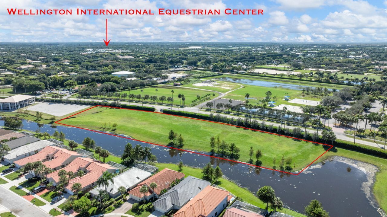 Prime location! 5 acre lot, that is located a short hacking distance to WEF/Wellington International showgrounds. The lot is already cleared, filled and ready to build a custom barn/estate home with the builder of your choice. Completed survey and building plans are available for the property. Close proximity to the Showgrounds, Palm Beach Point and Aero Club. The property has lake frontage, as well as bridle path access.