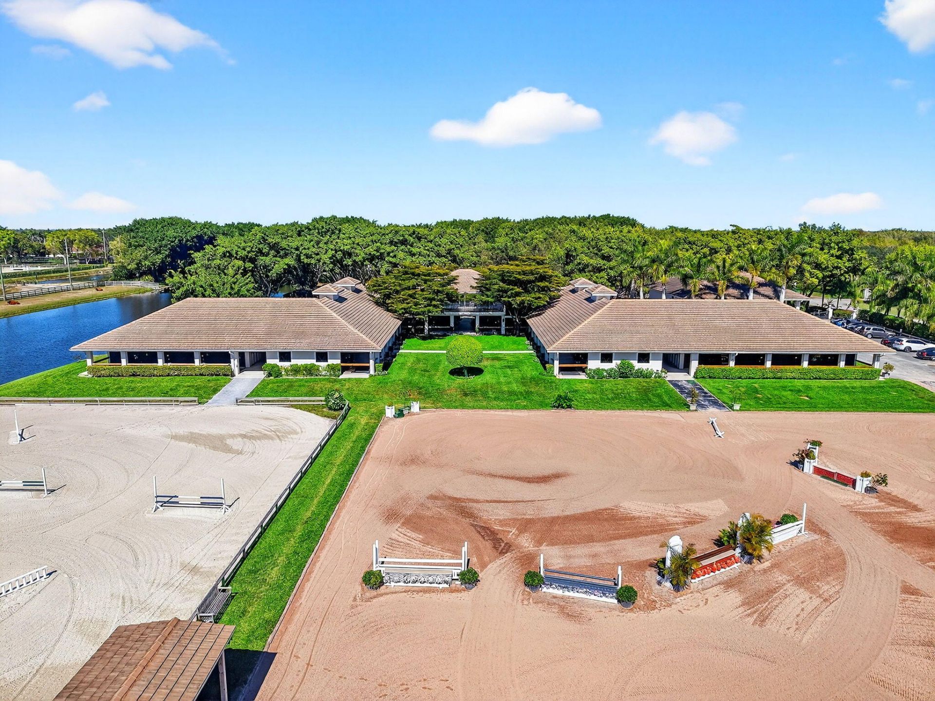 Idyllic and refined, this premier equestrian farm blends luxury, privacy, and top-tier performance facilities on one of the most desirable triple lots in Grand Prix Village. A rare find, the property offers a short hack directly to the show, set within a serene, sprawling landscape framed by mature clusia hedges, established palms, and meticulously maintained grounds. The farm features an exceptionally spacious main barn with 58 12' x 12' stalls, plus additional overflow stalls out back. The bar...Idyllic and refined, this premier equestrian farm blends luxury, privacy, and top-tier performance facilities on one of the most desirable triple lots in Grand Prix Village. A rare find, the property offers a short hack directly to the show, set within a serene, sprawling landscape framed by mature clusia hedges, established palms, and meticulously maintained grounds. The farm features an exceptionally spacious main barn with 58 12' x 12' stalls, plus additional overflow stalls out back. The barn showcases custom, high-end stall fronts, three well-appointed tack rooms, and two professional arenas, one sand and one all-weather, complemented by a new hot walker and a round pen with premium footing. Designed to support high-level training, competition, and boarding, the property Designed to support high-level training, competition, and boarding, the property includes 14 paddocks, multiple wash stalls, double laundry rooms, abundant storage, a large vet and farrier stall, and dedicated outlets for therapeutic equipment. Additional amenities include a large utility building, hay and shavings storage, an ice machine, and a discreet, sealable manure bin that maintains a clean, fly-controlled environment. The residence offers multiple apartments totaling 13 bedrooms and a new roof installed in 2023. Ideally positioned within Grand Prix Village, a gated equestrian community renowned for its luxury estates in the heart of Wellington's equestrian community.