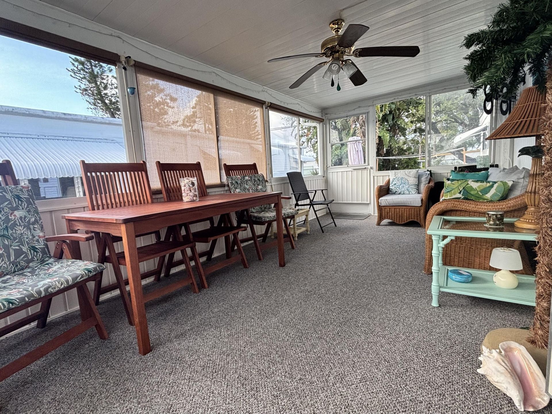 LOW HOA + NO LAND LEASE + LOW RE TAXES = AFFORDABLE 55+ LIVING! Enjoy Florida life at its best in this charming single-wide offering a simple yet inviting fa?ade complemented by furnishings that enhance its relaxed atmosphere. A seasonal or year-round residence, the home provides comfortable living with thoughtful design. A spacious living area flows seamlessly into the FL room, perfect for unwinding or entertaining. The kitchen island provides ample storage plus seating for casual dining. The s...LOW HOA + NO LAND LEASE + LOW RE TAXES = AFFORDABLE 55+ LIVING! Enjoy Florida life at its best in this charming single-wide offering a simple yet inviting fa?ade complemented by furnishings that enhance its relaxed atmosphere. A seasonal or year-round residence, the home provides comfortable living with thoughtful design. A spacious living area flows seamlessly into the FL room, perfect for unwinding or entertaining. The kitchen island provides ample storage plus seating for casual dining. The split-BR floor plan ensures privacy for both owners & guests, w/each BA featuring a step-in shower. A side door & entry door allow for a refreshing cross breeze. The neat patio is perfect for grilling & is adjacent to a storage shed housing a full-size washer/dryer adds to the home's functionality.