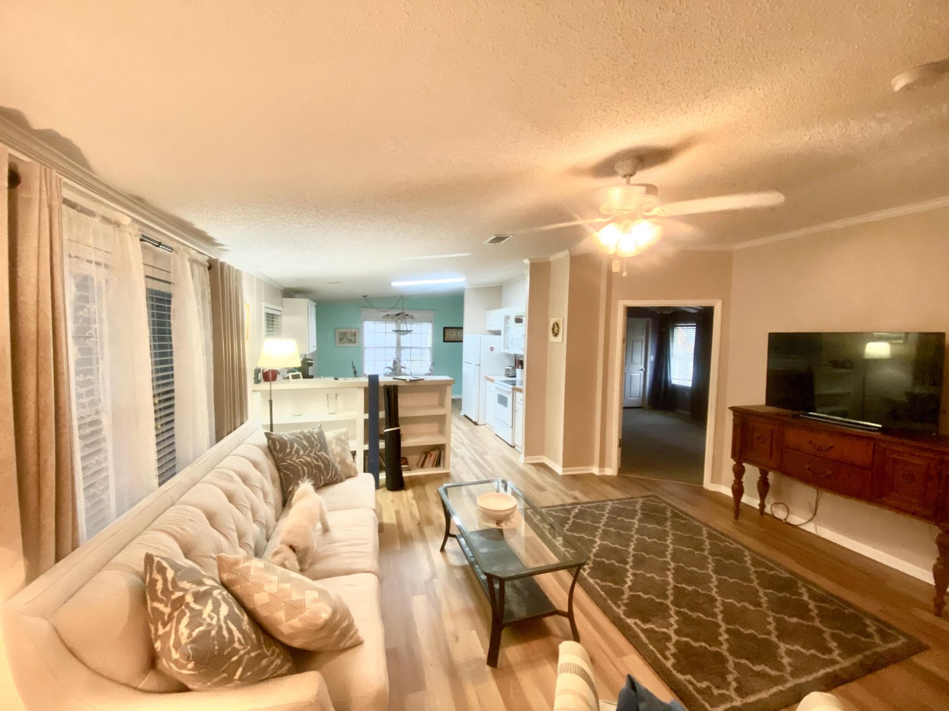 Beautifully maintained 2005 manufactured home, 3/2 with brand new LVP flooring, partially furnished and comes with a golf cart! Newly added hurricane-rated screened lanai with vinyl windows offers a quiet retreat, located on a corner lot with a longer driveway. Split floor plan allows guests added privacy. Laundry room has additional pantry for more storage. Large master bedroom with walk-in closet and beautiful en-suite bathroom. Hurricane protection all around the house included. This co...Beautifully maintained 2005 manufactured home, 3/2 with brand new LVP flooring, partially furnished and comes with a golf cart! Newly added hurricane-rated screened lanai with vinyl windows offers a quiet retreat, located on a corner lot with a longer driveway. Split floor plan allows guests added privacy. Laundry room has additional pantry for more storage. Large master bedroom with walk-in closet and beautiful en-suite bathroom. Hurricane protection all around the house included. This community has two clubhouses, two pools located on lakes, and surrounded by a nature preserve, quiet and tucked back off of US-1, private and quiet for you. AC 2020, Roof 2016, Washer & Dryer 2021, Lanai 2019