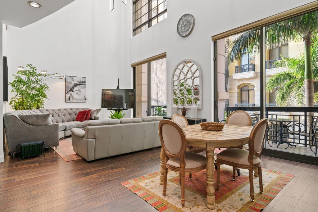 Find sophisticated, urban luxury downtown in the largest furnished 1BR/1.5BA loft at One City Plaza, featuring 1450 sqft on two levels, 30ft ceilings, two 65 sqft balconies and spiral staircase. Master suite includes an 85 sqft walk-in closet and 180 sqft bathroom with double sinks, oval soaking tub, rain shower and linen closet. The interior is updated with new lighting, Baldwin hardware, and an open kitchen with large pantry and new stainless appliances (Bosch DW, LG refrigerator, commercial s...Find sophisticated, urban luxury downtown in the largest furnished 1BR/1.5BA loft at One City Plaza, featuring 1450 sqft on two levels, 30ft ceilings, two 65 sqft balconies and spiral staircase. Master suite includes an 85 sqft walk-in closet and 180 sqft bathroom with double sinks, oval soaking tub, rain shower and linen closet. The interior is updated with new lighting, Baldwin hardware, and an open kitchen with large pantry and new stainless appliances (Bosch DW, LG refrigerator, commercial sink). Includes two adjacent parking spaces on the same floor in a guarded garage and two storage units totaling 635 cu.ft. Amenities include concierge and valet, a rooftop pool, steam room, sauna, BBQ and fitness center. New luxury developments (restaurants, retail, hotel, office) and parks nearby.