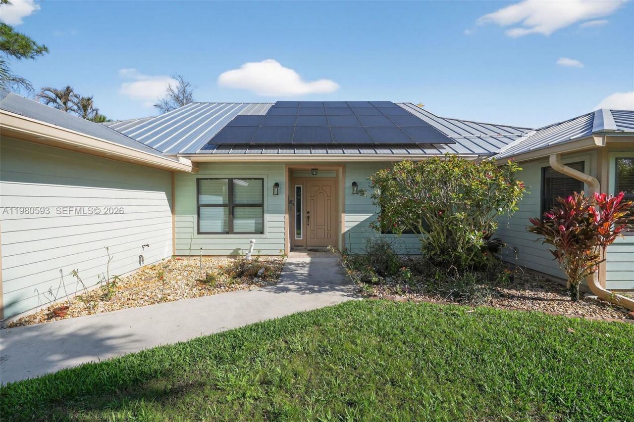 CWelcome to 8535 SE May Terrace, a beautifully maintained 4-bedroom, 2-bath single-family home that combines comfort, privacy, and convenience in one of Hobe Sounds most desirable neighborhoods. Situated on a 1/2-acre lot at the end of a peaceful dead-end street, this 3,000 sq. ft. residence blends timeless Florida character with modern updates and serene surroundings.Step inside to discover vaulted ceilings lined with cedar tongue-and-groove and accented by cypress beams, creating a warm, cabin...CWelcome to 8535 SE May Terrace, a beautifully maintained 4-bedroom, 2-bath single-family home that combines comfort, privacy, and convenience in one of Hobe Sounds most desirable neighborhoods. Situated on a 1/2-acre lot at the end of a peaceful dead-end street, this 3,000 sq. ft. residence blends timeless Florida character with modern updates and serene surroundings.Step inside to discover vaulted ceilings lined with cedar tongue-and-groove and accented by cypress beams, creating a warm, cabin-like feel throughout the living spaces. Natural light fills the home through upgraded hurricane-impact windows. The generous kitchen features granite countertops, stainless-steel appliances, and hardwood oak cabinetry with special hidden features.Key Property Highlights:Eco-Friendly & Efficient: Outfitted with solar panels that keep electric bills between $30?$35 per month. Features a 50-amp EV charger in the garage and a 30-amp RV hookup out front.Recent Mechanical Upgrades: Brand new AC system (unit, air handler, and compressor) installed within the last 12 months, featuring a Remy Halo air purification system. The flat roof section has also been completely redone.Master Suite Sanctuary: A custom-designed retreat featuring a one-piece solid stone sink, brushed nickel fixtures, and a seamless glass shower with dual rain shower heads, custom tile, and River Rock flooring.